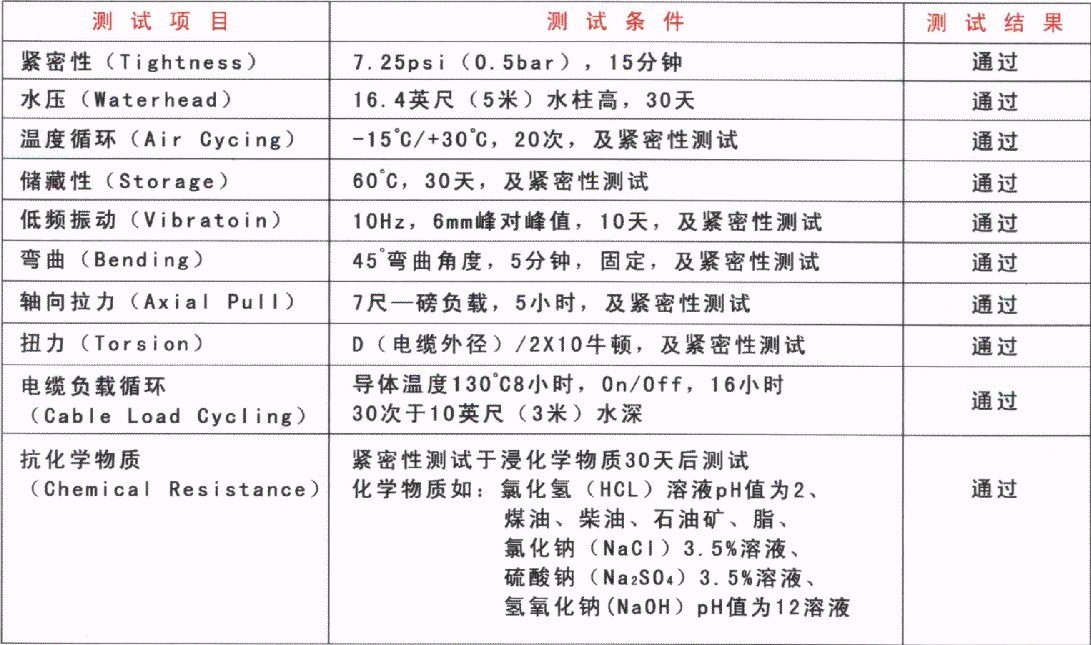 模擬3米水壓和導(dǎo)體溫度高達(dá)90℃環(huán)境下的老化情況 |