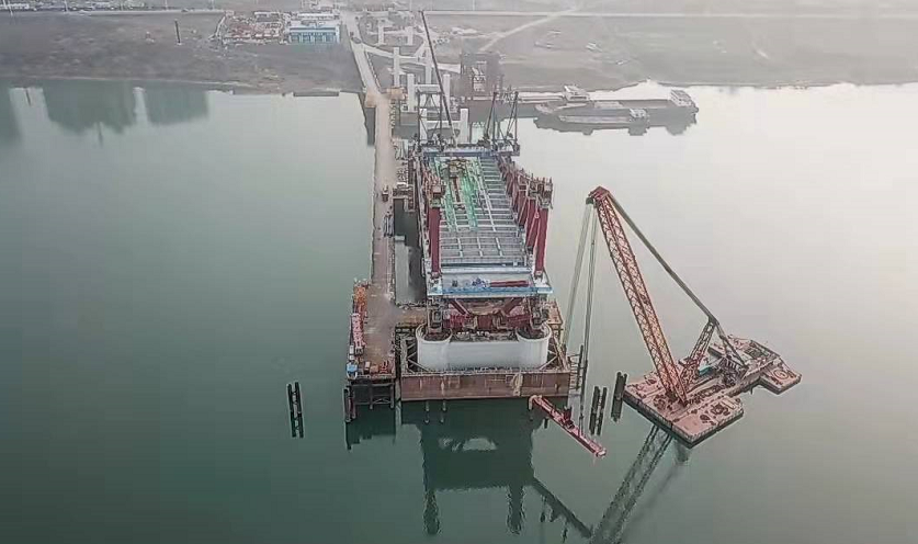 清水塘河東施工現(xiàn)場,建筑結構伸入河中距離不長,但已經(jīng)同步搭建鋼結構部分。