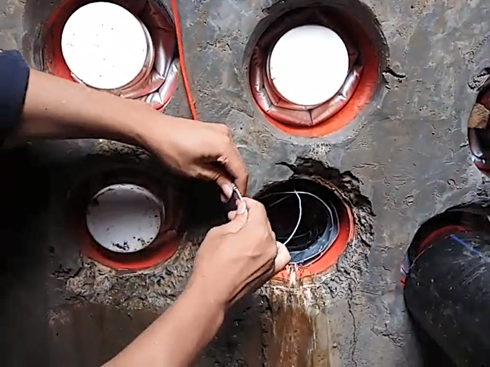 4、確認(rèn)電纜管孔安裝位置堅(jiān)硬牢固。預(yù)埋電纜管道的管孔(不含柔性軟管)和機(jī)械鉆孔的混凝土墻孔,管壁都是相對(duì)堅(jiān)硬牢固的,能夠承受密封氣囊的外擴(kuò)性氣壓膨脹。而軟管或空心隔墻一類(lèi)的管孔,則不適合安裝密封氣囊。