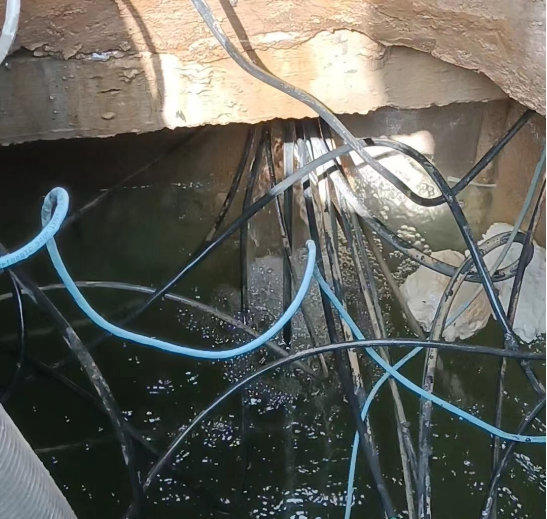 項(xiàng)目背景:該項(xiàng)目建設(shè)臨近交接驗(yàn)收,但項(xiàng)目片區(qū)內(nèi)一百多個(gè)電纜井的積水問題一直未能解決,導(dǎo)致運(yùn)營方不予簽字驗(yàn)收。電纜井項(xiàng)目施工方找到我公司尋求解決辦法。經(jīng)過我司派人上門現(xiàn)場勘察和了解,該項(xiàng)目電纜井及電纜管線的預(yù)埋工程是分兩次進(jìn)行施工,前后兩次施工屬于不同施工隊(duì)伍,第一次施工(下部管線)預(yù)埋符合常規(guī)設(shè)計(jì)標(biāo)準(zhǔn),而第二次預(yù)埋施工(上部管線)沒有按照設(shè)計(jì)要求,情況非常糟糕。電纜井積水狀態(tài)(見下圖):