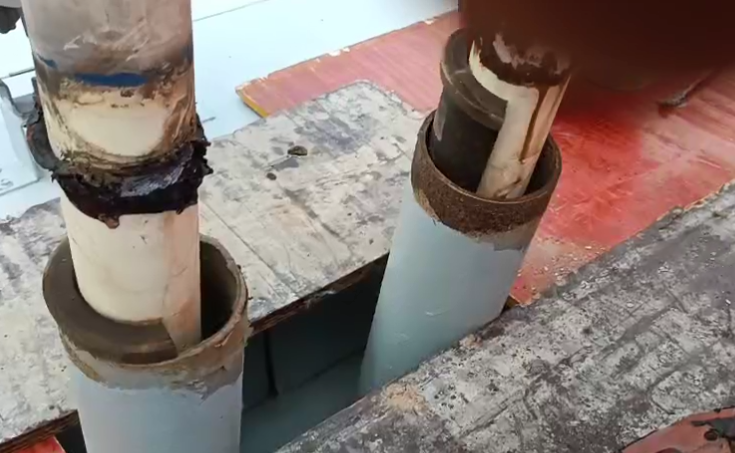 傳統拉索錨具防腐方式主要是采用:頂部裝防雨罩+索導管口用聚氨酯發泡劑密封+索導管底部灌注防腐油脂。但經過這么多年的實踐顯示,該方式存在一定的不足和問題。首先,在材料性能方面:防雨罩受橋梁拉索頻繁震動和防雨罩結合部位的密封材料本身存在老化問題,容易出現裂縫而導致雨水滲入;聚氨酯發泡劑同樣處于橋梁拉索頻繁振動下,材料與拉索結合部位容易出現裂縫,無法起到防水密封的效果;索導管內部灌注防腐油脂,也會因為高溫導致防腐油脂溶解稀釋喪失防腐性能。再就是從整個施工工藝方面看,灌注防腐油脂和發泡劑,材料成本不小,灌注過程費時費力,對現場環境也有影響。后續養護施工需要清空索導管再重新灌注材料,更是麻煩。