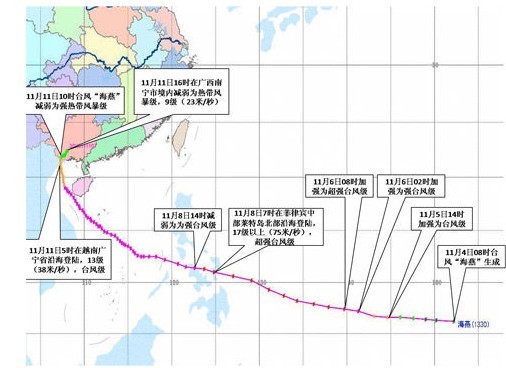 第30號臺風“海燕”路徑圖(11月4日至11日16時)